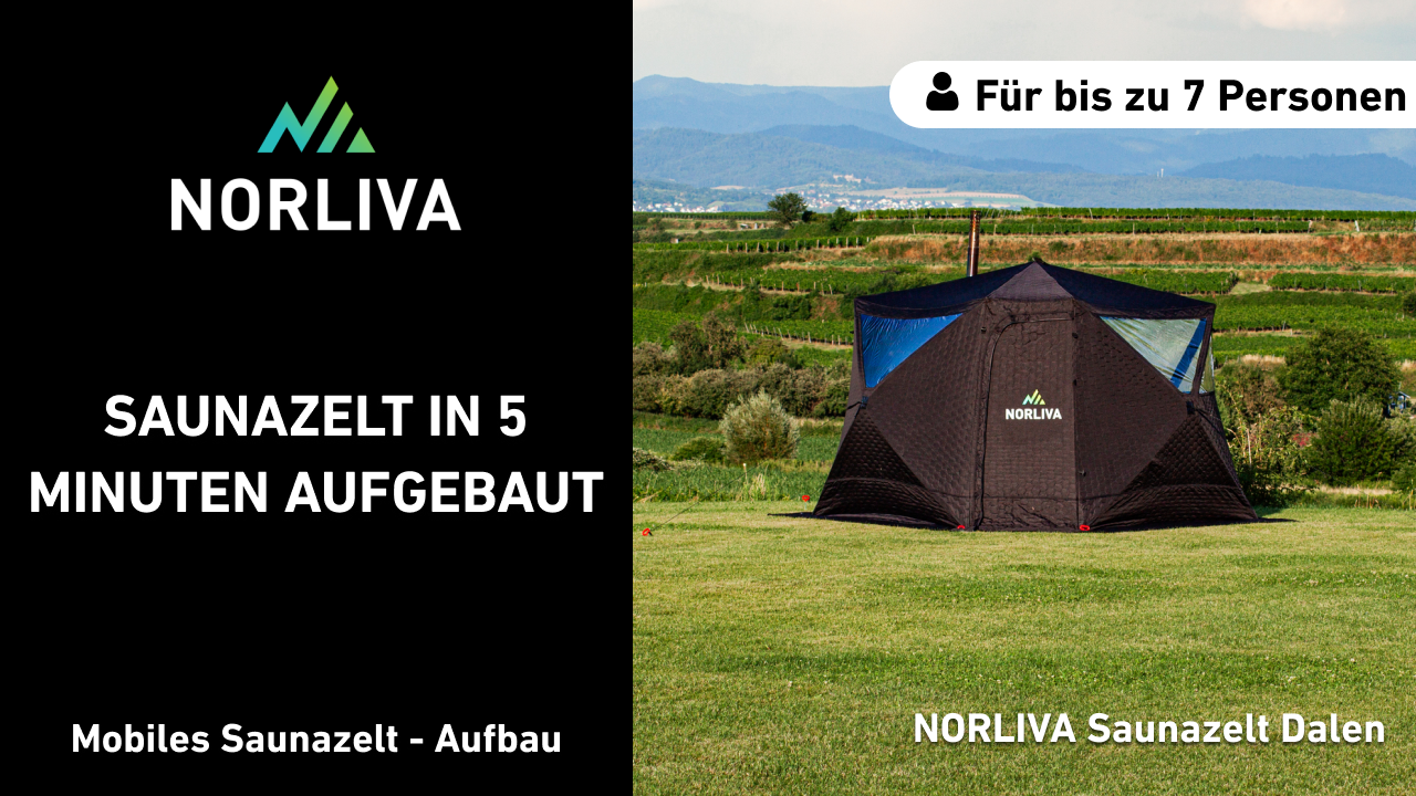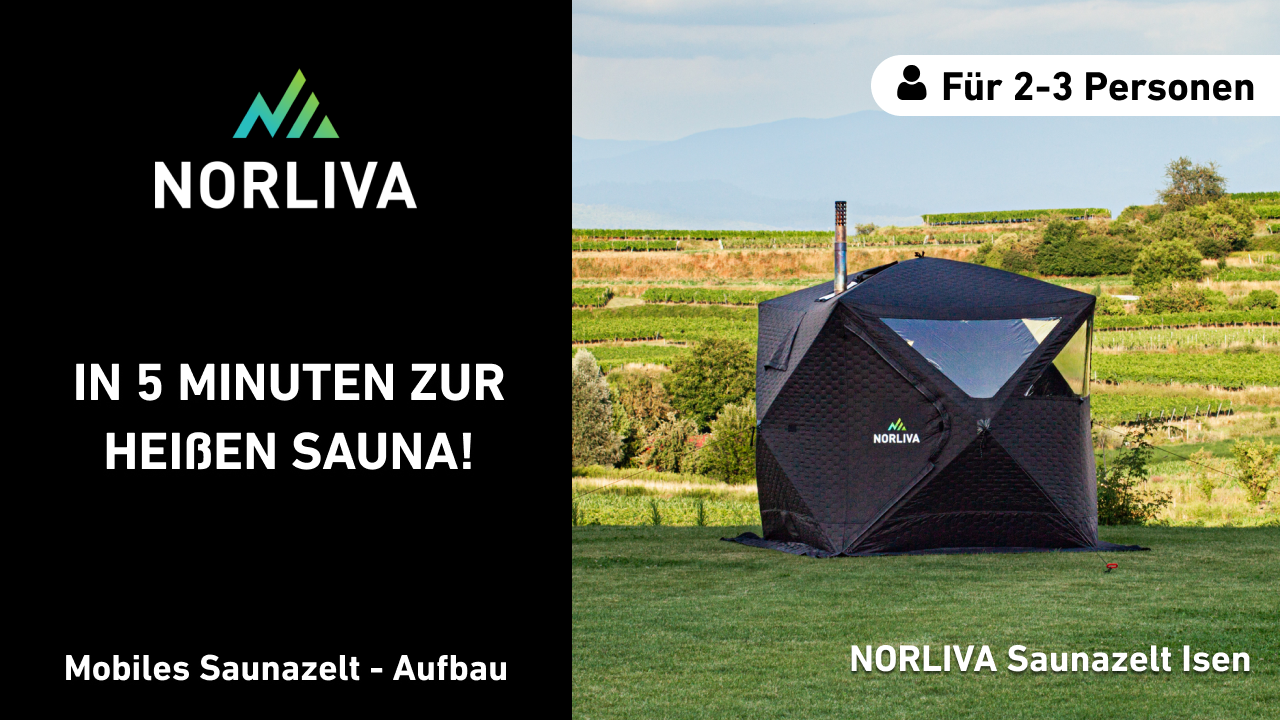 The NORLIVA sauna tent can be used flexibly – in your own backyard, at campsites, or out in nature. No building permit is required on private property. When using it in the wild, be sure to observe local regulations and nature conservation rules.