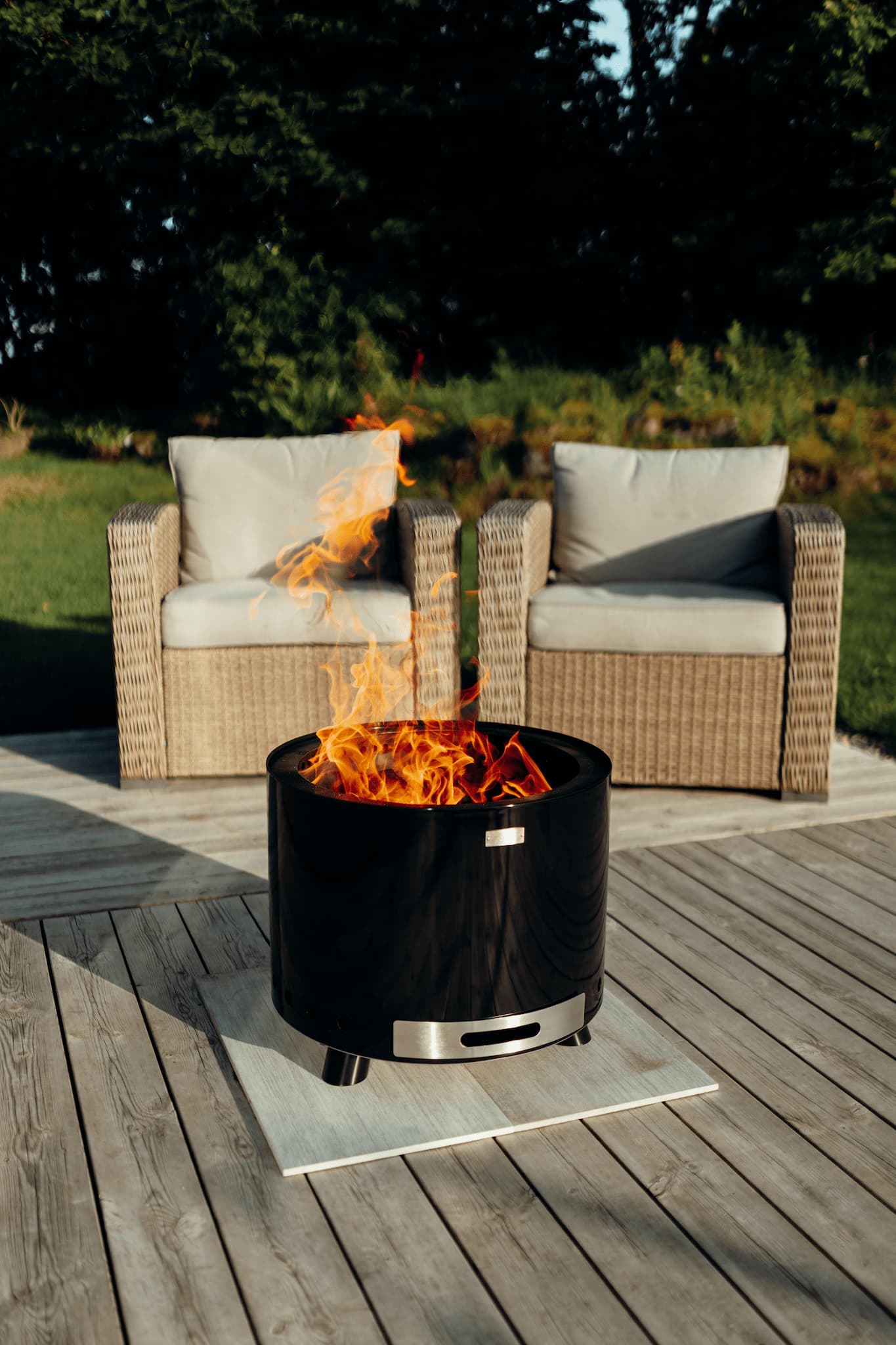 Thanks to the enameled surface, the fire pit still looks great even after use.