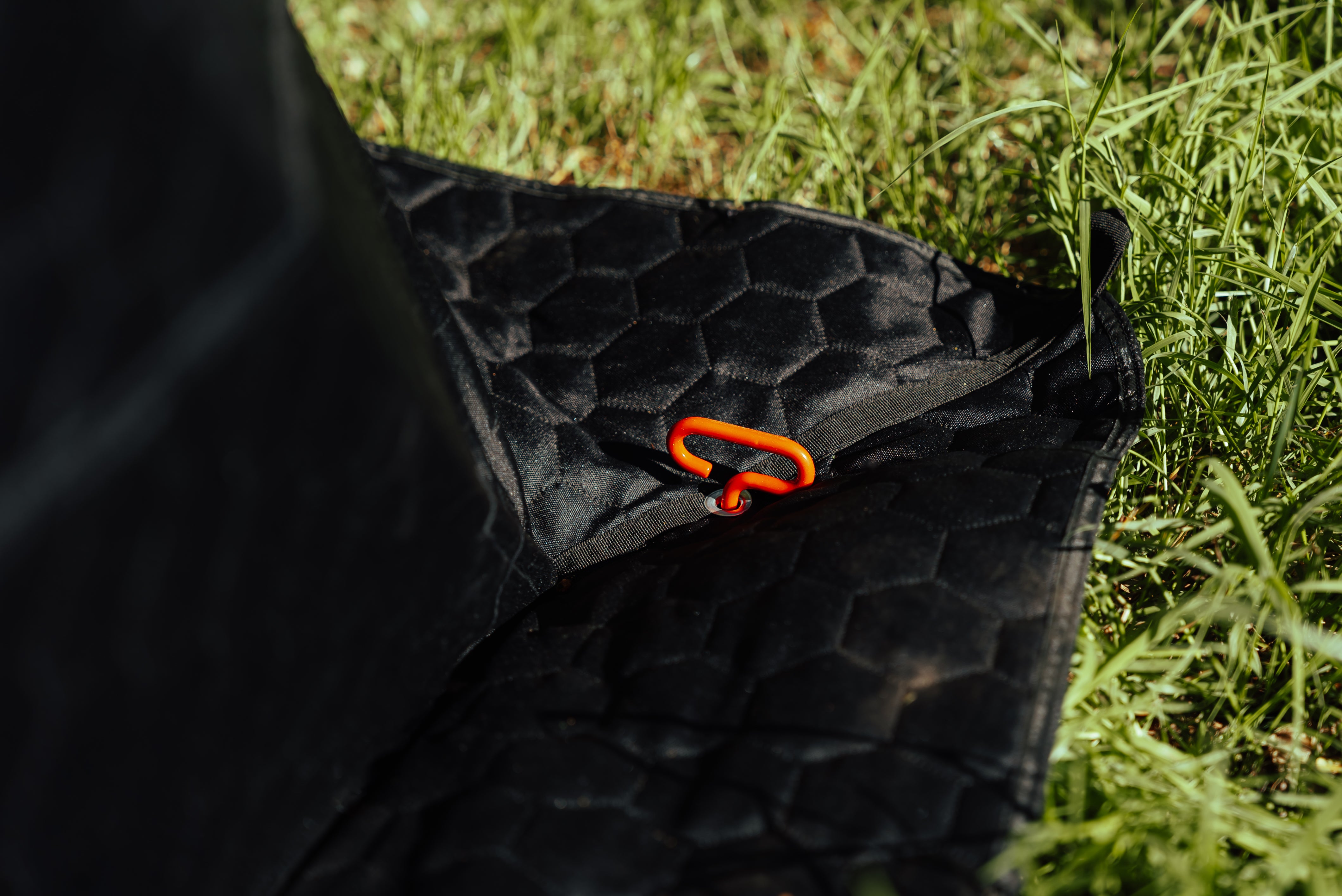Stellen Sie das Saunazelt auf eine ebene, stabile Fläche und sichern Sie es mit Heringen, Abspannseilen oder Sandsäcken. So steht das Zelt auch bei Wind fest und sicher.