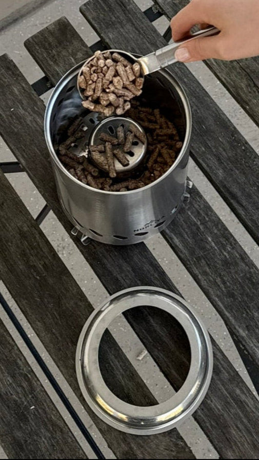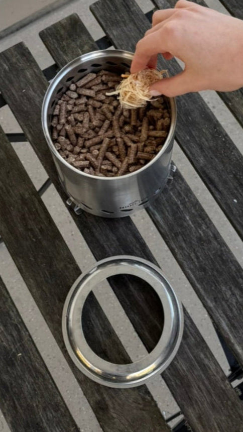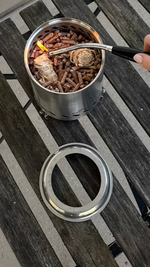 With the Lulea tabletop fire, you can use small pieces of wood, pellets, or fire starters. It's important that the wood is dry to prevent smoke. Hardwoods like beech, oak, or maple work best, as they burn hotter and longer, which helps the smokeless fire pit operate efficiently. Avoid damp or resinous wood.